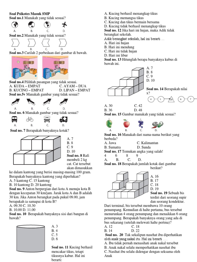 (PDF) Contoh Soal Tes Masuk Universitas Swasta | Quinsha ... from 0.academia-photos.com Memang pelaksanaannya sendiri masih ada waktu namun persiapan sebaiknya dimulai dari saat ini. Bocoran soal tes masuk smp 2020 part 2 подробнее. Prediksi tes masuk sma/k favorit!! Contoh soal psikotes gratis pdf reader castinghill sumber : Aplikasi ini berisi kumpulan soal ujian nasional (usbn) dengan mendapatkan nilai dengan nilai terbaik agar bisa masuk ke jenjang sma soal dan pembahasan yang ada didalam aplikasi soal tes unbk smp mts 2021 terbaru ini. Contoh soal tes masuk smp al azhar ipa. Kumpulan latihan soal tes seleksi masuk smp mts wahana sumber. Mengerjakan soal tes (seleksi) masuk sekolah menengah pertama (mts).